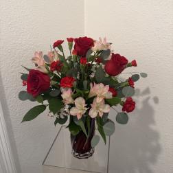 Price: $99.95Dozen Red Roses In Vase with Greenery